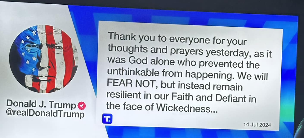 Because ever since the assassination attempt, the leaders of the Republican Party have expressed a belief that not only is God on THEIR side, but that God - through "divine intervention," as Tucker Carlson said last week - has ordained Trump to be America’s next president.