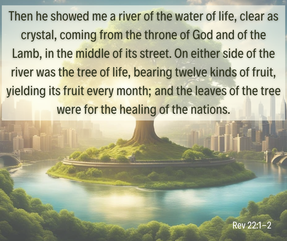 Revelation gives us a vision of the restored union of heaven and earth, which has been healed from the pain humans have inflicted throughout history. The vision John describes is one of God's plan for new creation...like the Garden of Eden 2.0, linking back to page one of the Bible where humans were created to partner with God. (Watch this Revelation video from The Bible Project for a more complete explanation.)